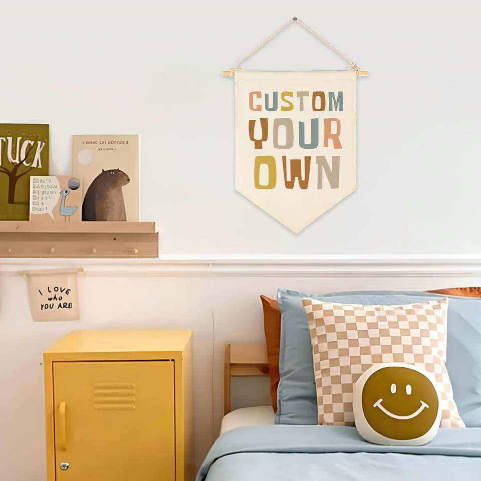 Drapeau Fanion Personnalisé en Polyester Imprimé Numérique Écologique, 15x11 Pouces, Idéal pour Chambre d'Enfant, Salle de Jeux, Chambre de Tout-Petit - Vente Chaude