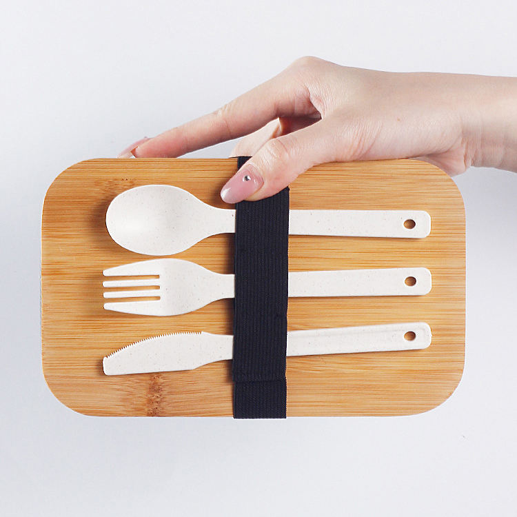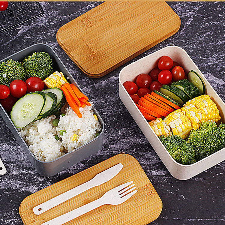 Récipients alimentaires biodégradables pour enfants, boîte en plastique, couvercle carré en bois, bento d'école, pour déjeuner bébé, offre spéciale,