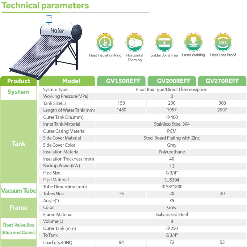 Nom du produit:Chauffe-eau solaire à tubes sous vide non pressurisé