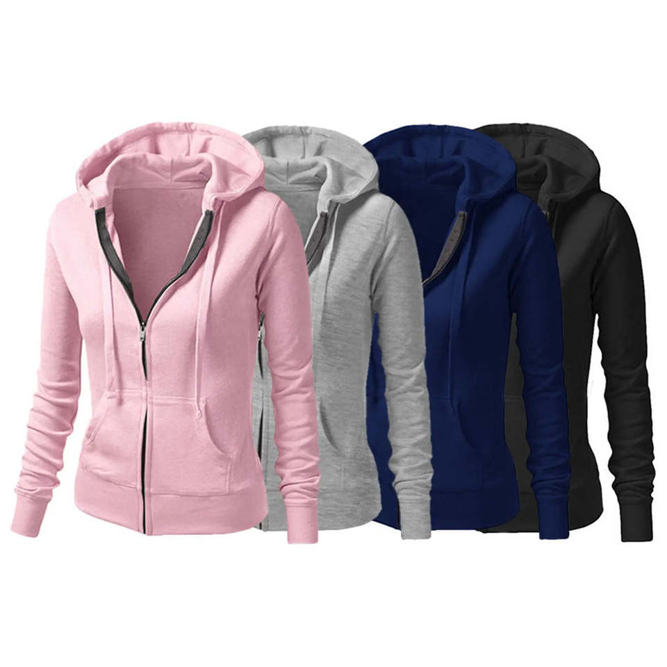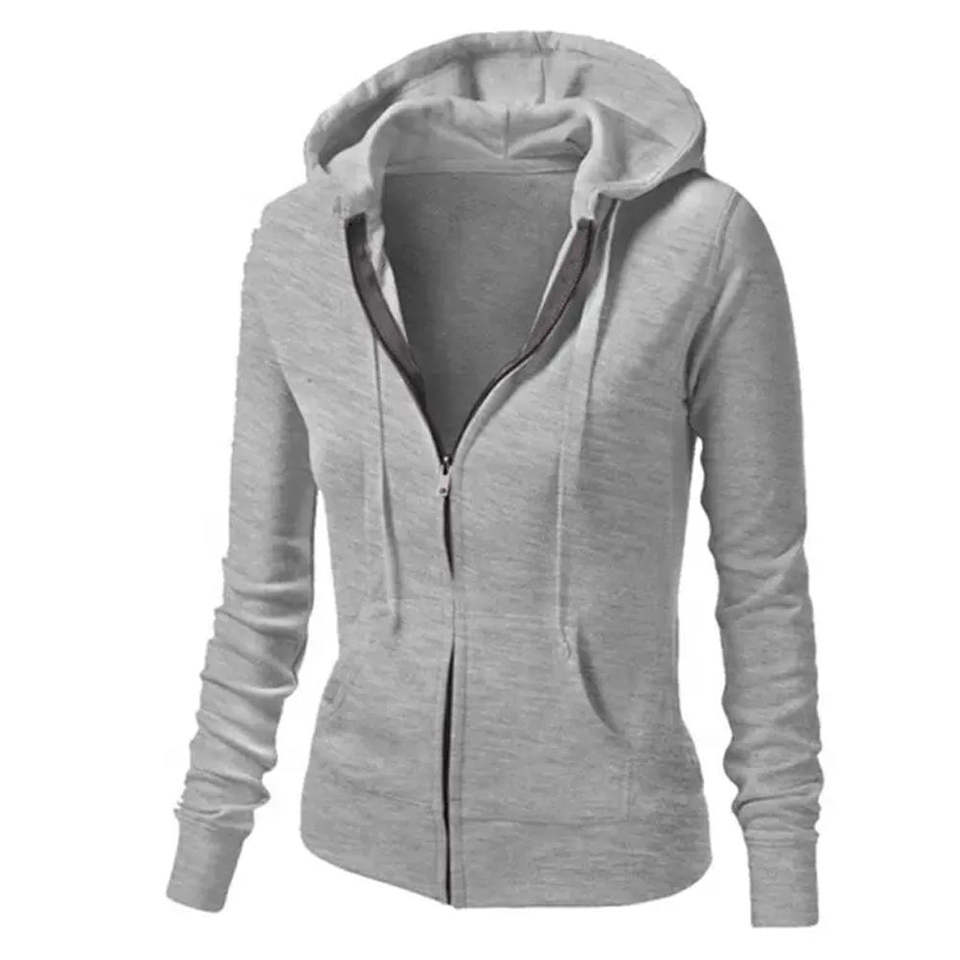 Vente chaude à manches longues couleur unie femmes à capuche polaire sweats à capuche femmes 100% coton fermeture éclair femmes sweats à capuche