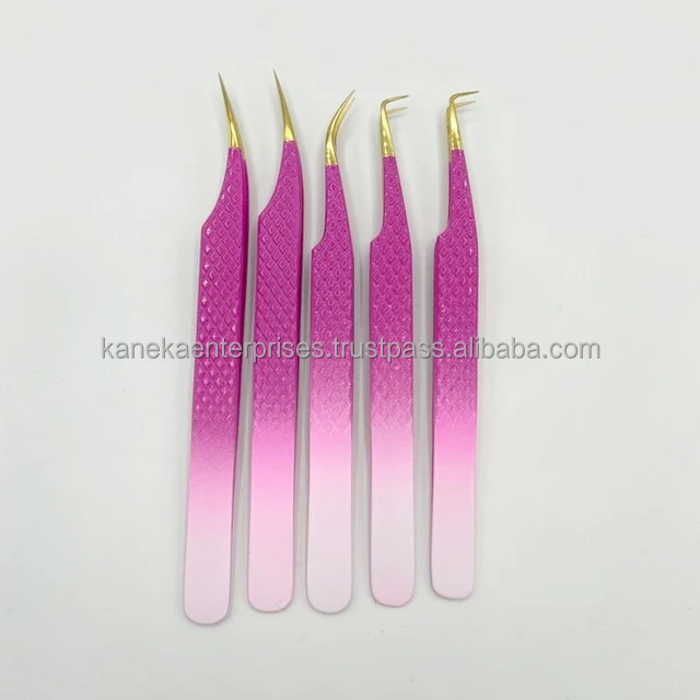 Vente chaude, pince à épiler professionnelle à double ton, marque privée, extension de cils, couleur personnalisée, acier inoxydable, anti-magnétique, confortable