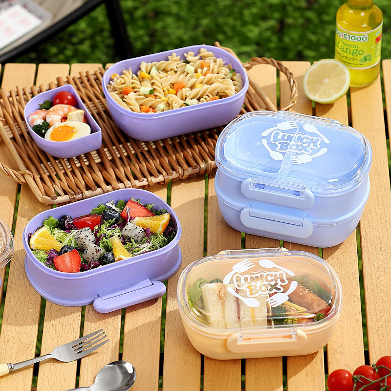 Boîtes à lunch en plastique à couche simple et double avec couvercles, portables, durables et compatibles micro-ondes – Vente chaude