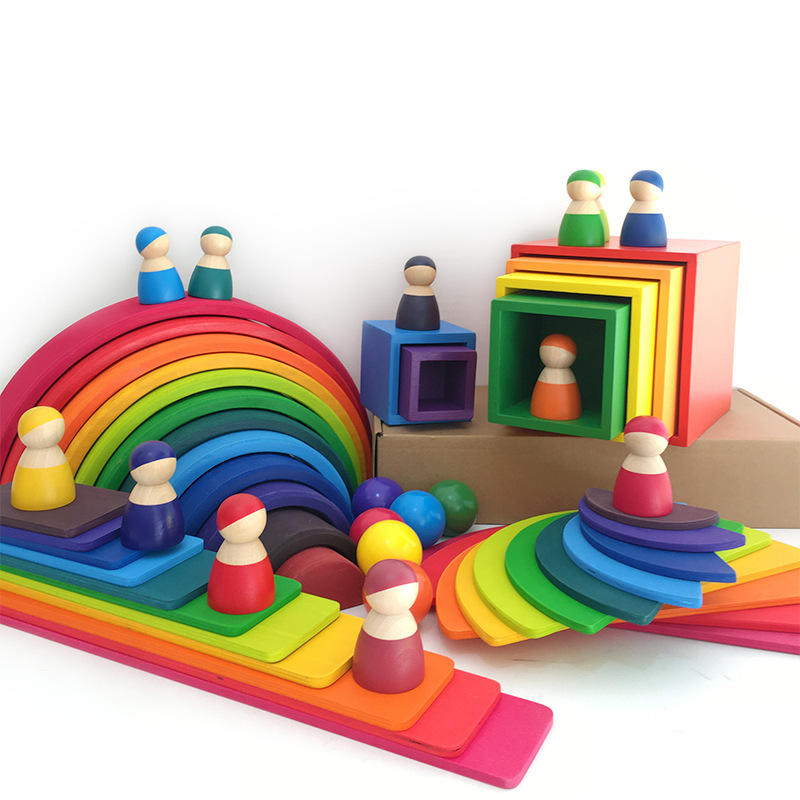 Hot Sell Wooden Rainbow Stacker 12 Piece Montessori Wooden Stacked Rainbow Colored Nordic Stacking Stones Toys Grimms Blocks