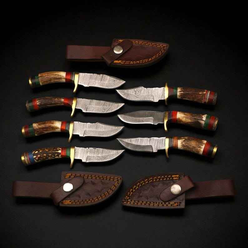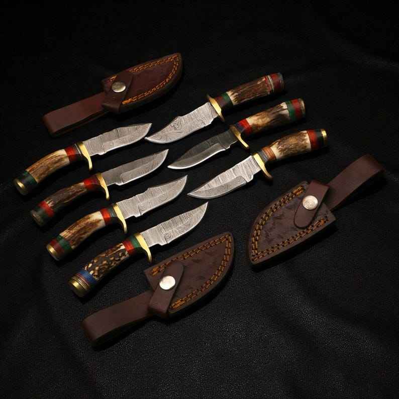 Couteaux de chasse Skinner en acier Damas de qualité supérieure, faits main et personnalisés, 4 pouces, avec manche en bois de cerf - Best-seller