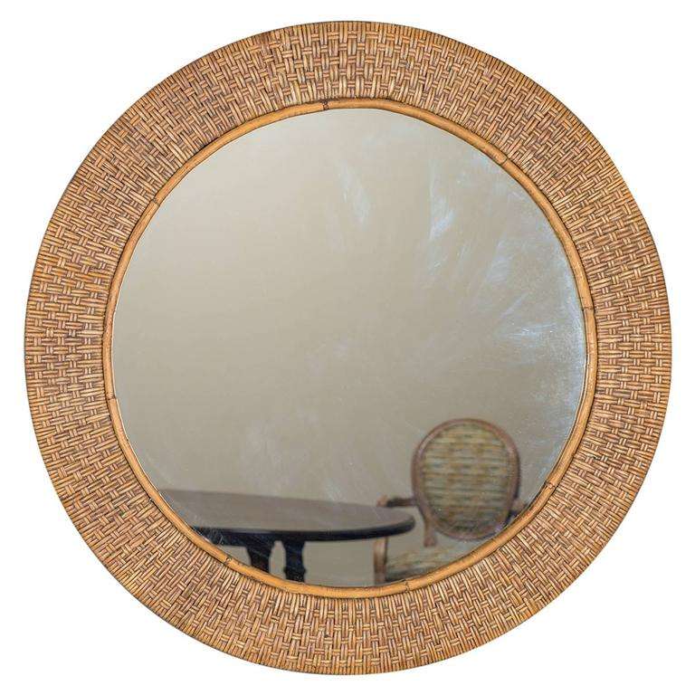 Vendeur chaud Vietnam naturel osier rotin miroirs suspendus 100% fait à la main bambou mural miroirs décoratifs salon métal