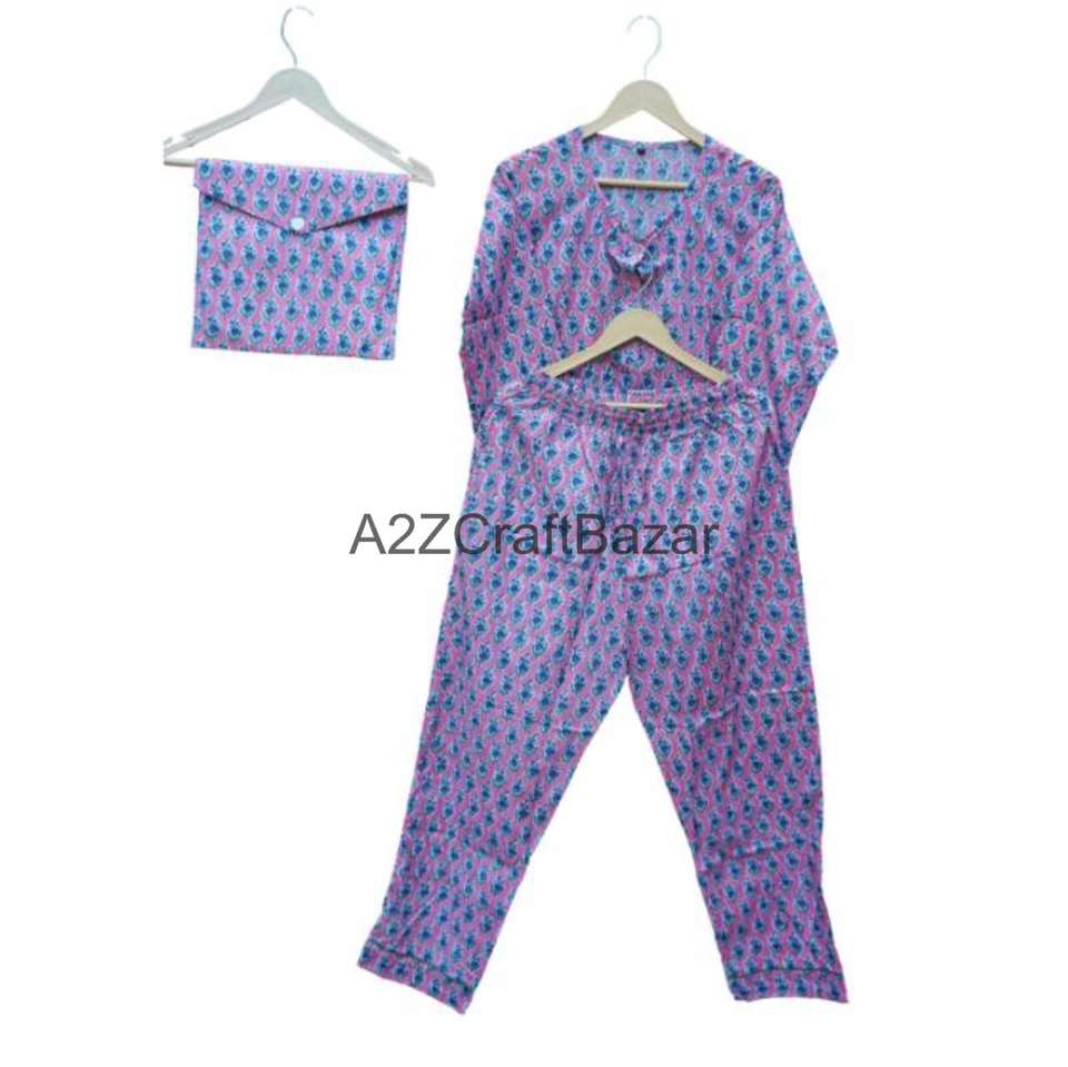 Ensemble pyjama imprimé à la main en coton 100% pur, col rond, pour femmes et filles, très demandé