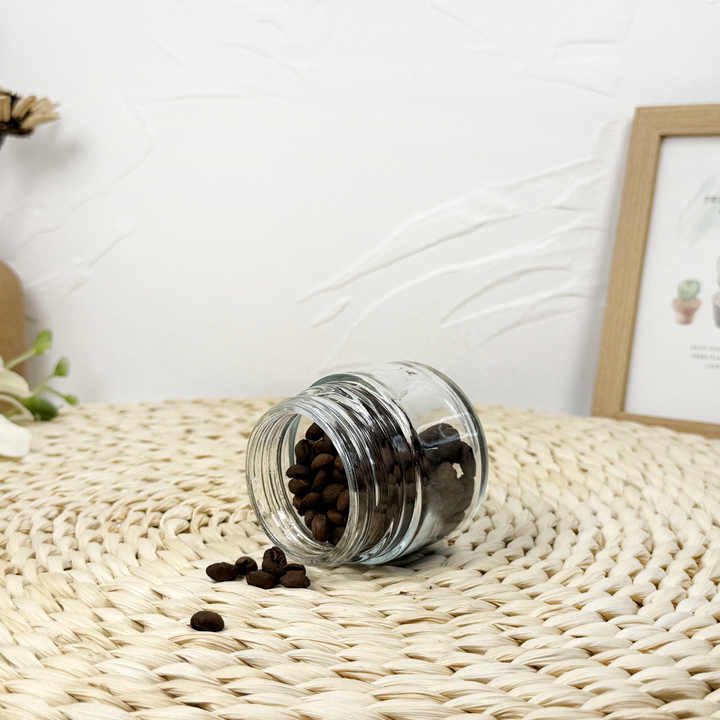 Pot en verre CR transparent de 100 ml à large ouverture, très vendu, pour le stockage des herbes et des aliments