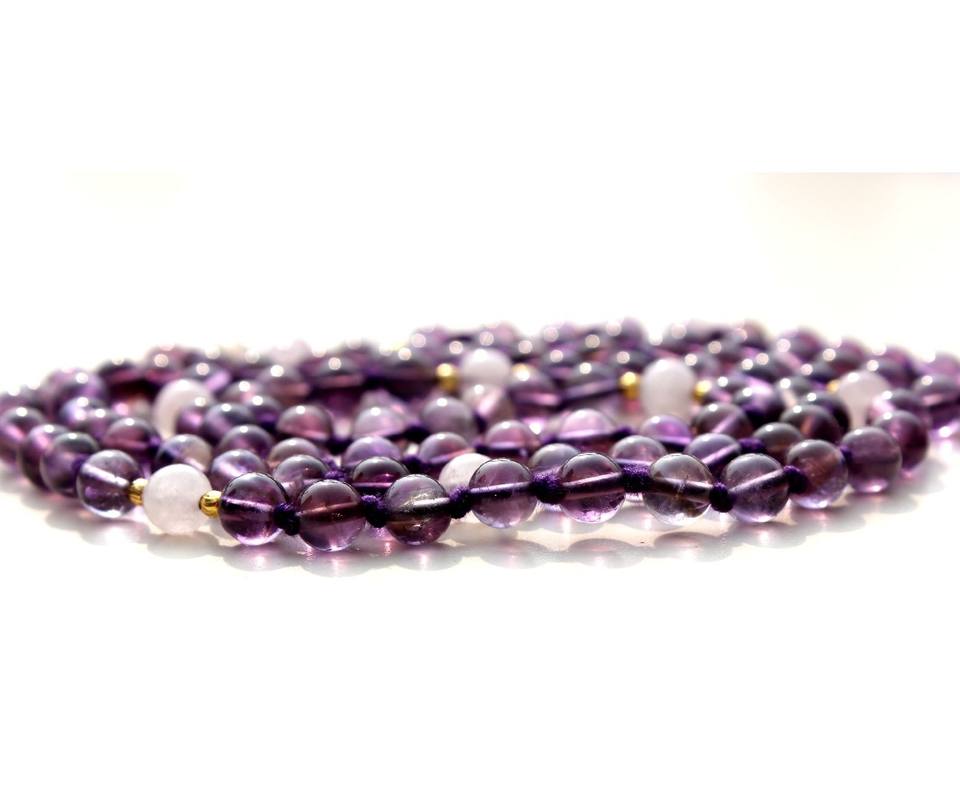 Hot Selling 108 Knotted Mala Beads Handmade Indian Artist Pulsera Amethyst Moonstone Yoga Jewelry Pearl Necklace