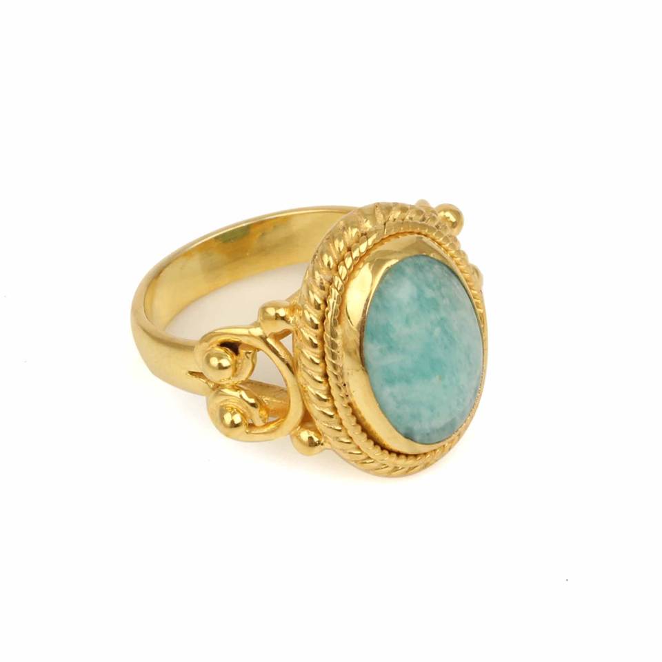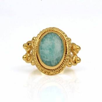 Product Name:Natural Amazonite Oval Shape Sterling Silver Gold Plated Ring