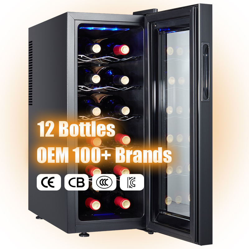 Ventes chaudes 12 bouteilles Mini réfrigérateur à vin de petite taille Cave à vin pour hôtel Bar Maison Cuisine