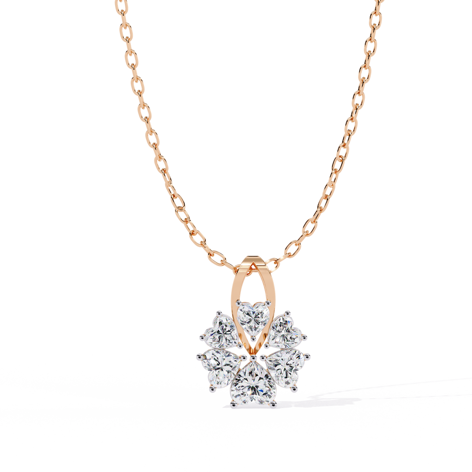 Vente chaude 14K Réel Or Blanc Lab Cultivé Diamant Collier Exclusif Fleur Forme Coeur Coupe Bijoux pour Femmes
