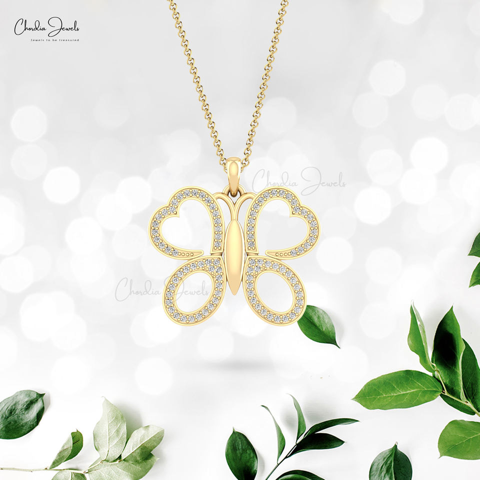 Vente chaude 14k Solide Or Rose Papillon Déclaration Pendentif 0.44 CTW Diamant Blanc Pendentif De Mariage Avril Pierre De Naissance Fine Jewelry