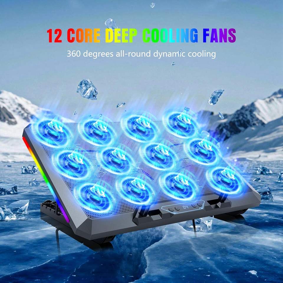 Refroidisseur d'ordinateur portable 17 pouces à 12 ventilateurs silencieux, support de refroidissement USB pour ordinateur portable de gaming – Vente chaude
