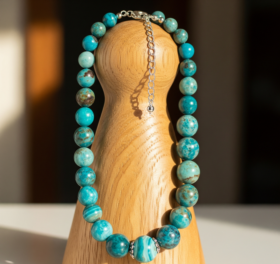 Vente chaude 18 pouces argent 925 femmes collier noué à la main conception chrysocolle pierre perles eau douce à la mode accessoire de mode