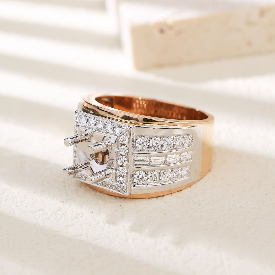 Hot Selling 18K Two Tone Soild Gold Semi Mounting Beautiful Design for Natural Diamonds for Men's Wedding Parties Personalized