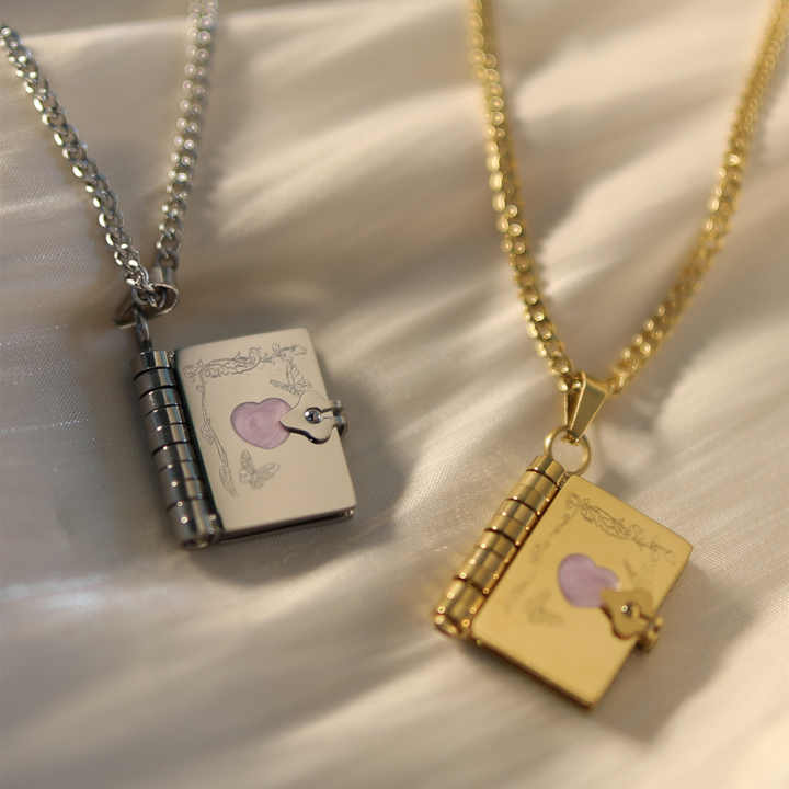 Collier pendentif en forme de livre à ouverture et fermeture en forme de papillon en acier inoxydable plaqué or 18 carats, vente chaude, bijoux en forme d'enveloppe en forme de cœur DIY