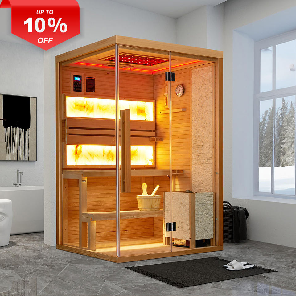 Sauna en céramique pour 2 à 3 personnes avec chambre pour 2 personnes avec pruche canadienne et panneau de commande Vente chaude