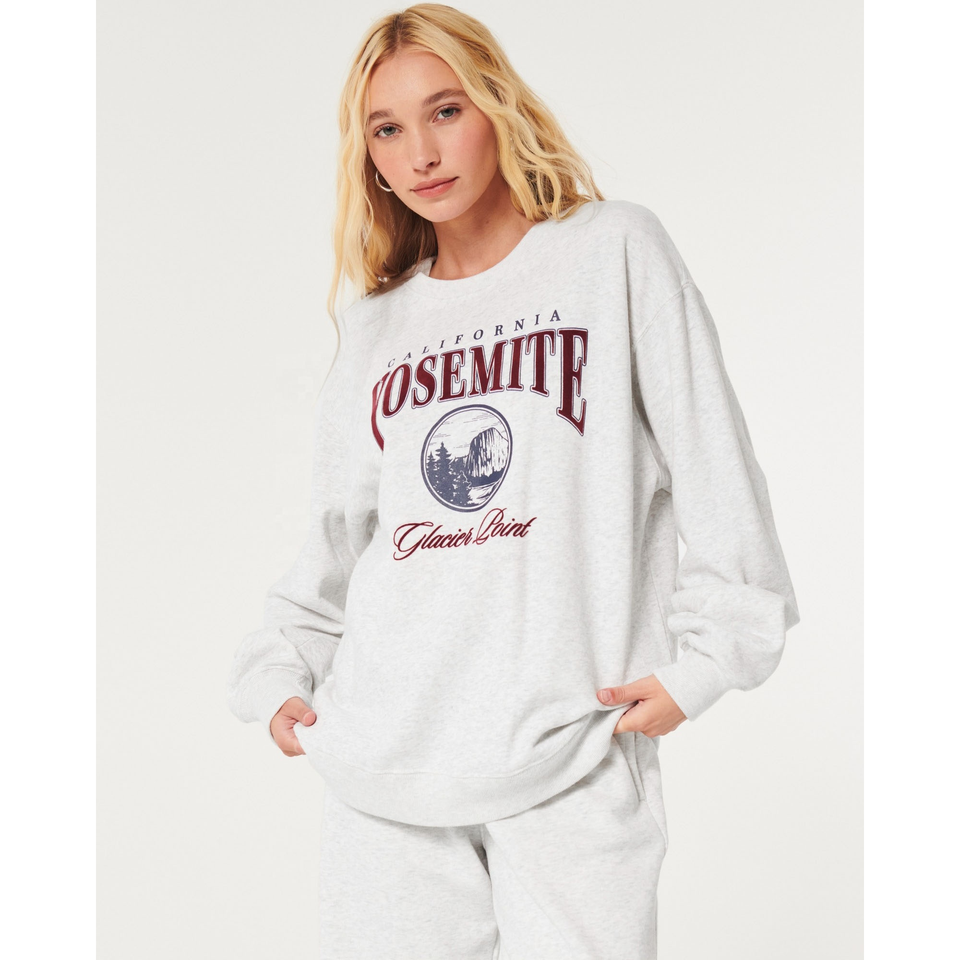 Vente chaude 2025 sérigraphie sweat ample femmes 100% coton rue porte personnaliser femmes sweat col montant sweat