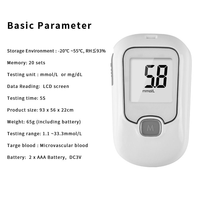 Gamme de mesure:20 mg/dL - 600 mg/dL (1,1 mmol/L-33,3 mmol/L)