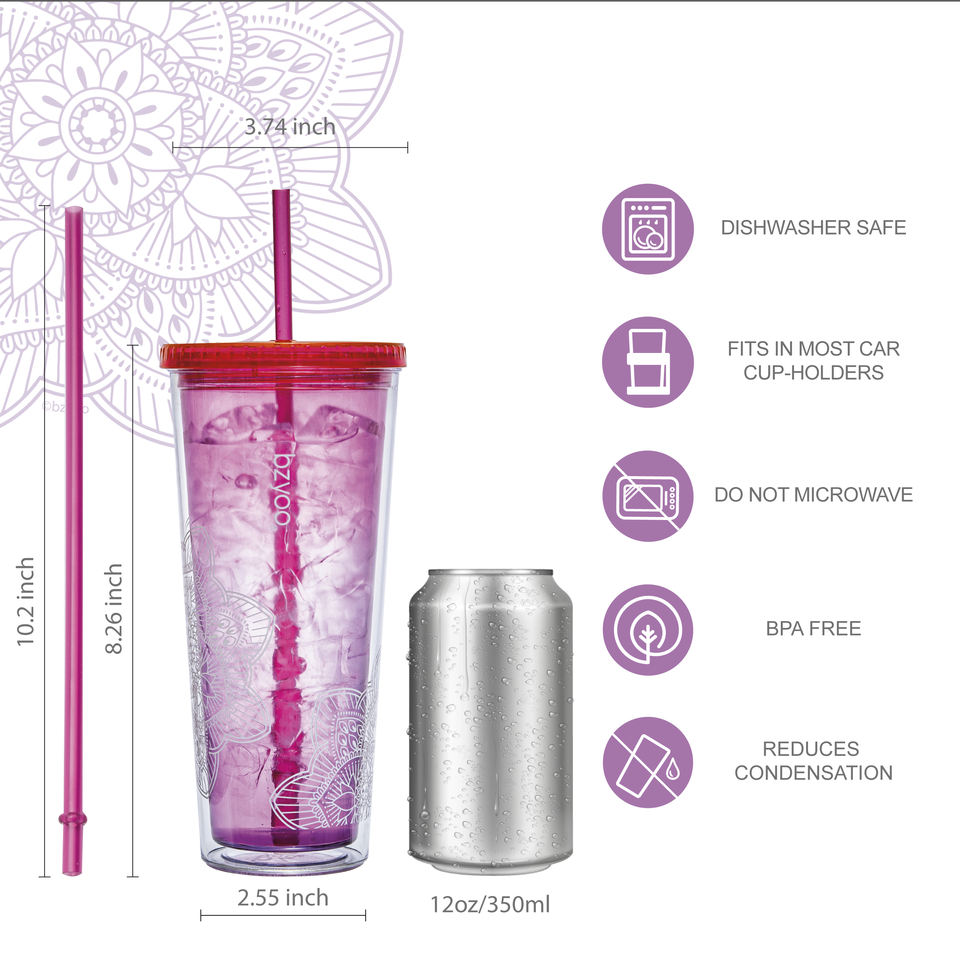 Gobelet froid en plastique de 24oz en plastique de vente chaude gobelet en plastique rose avec paille