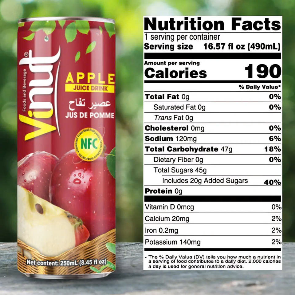 Jus de pomme pur 250 ml en bouteille, faible en gras, échantillon gratuit, fabrication de boissons au Vietnam, marque privée OEM/ODM, vente chaude