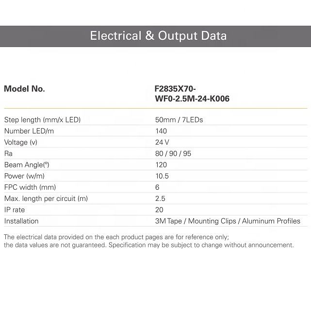 Numéro de Type:2835 Top LEDs (140 LEDs/m) 2835-140-6mm-2.5m