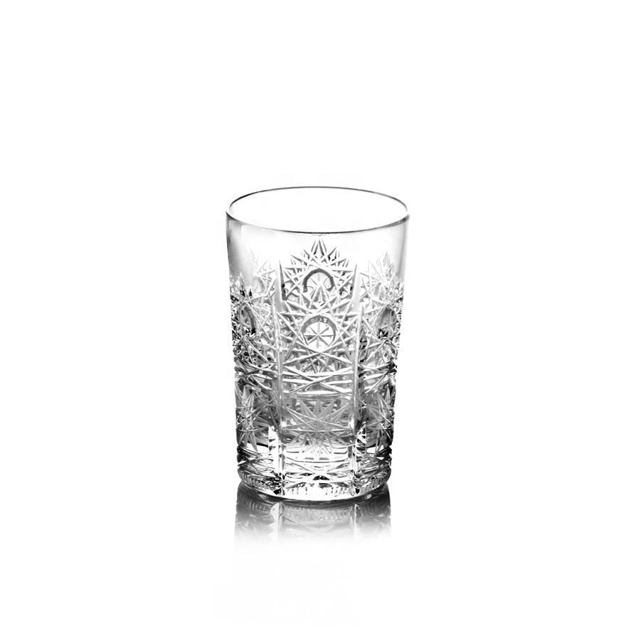 Gobelet en verre gravé de style marocain de 2oz pour boire de l'eau et du thé, mini tasses en verre avec logo en relief, offre spéciale