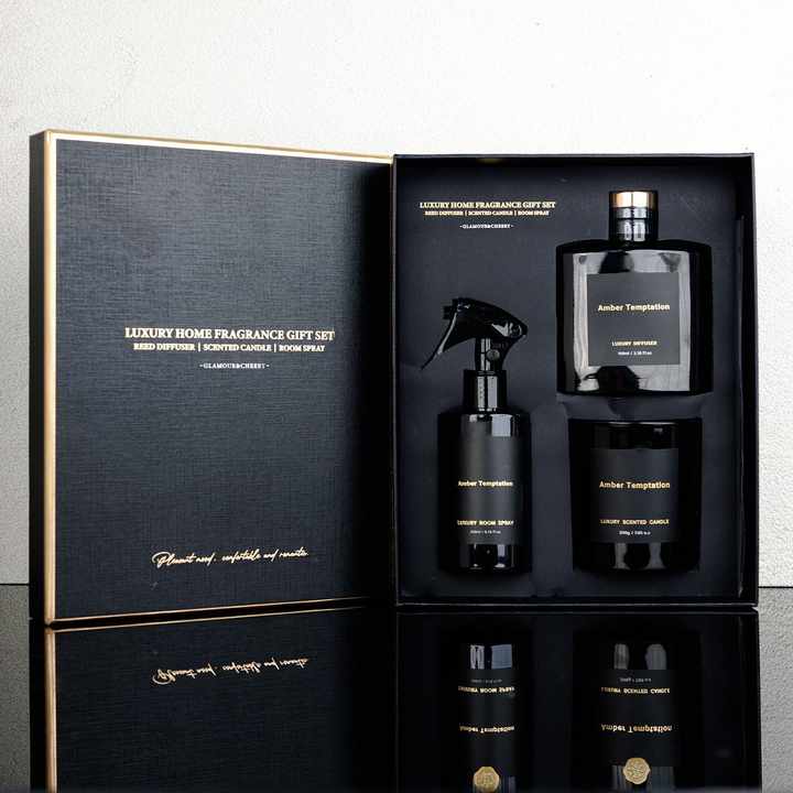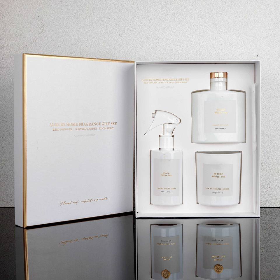 Nom du produit:Coffret cadeau rituel best-seller, lot de 3 : Bougie parfumée et diffuseur à roseaux