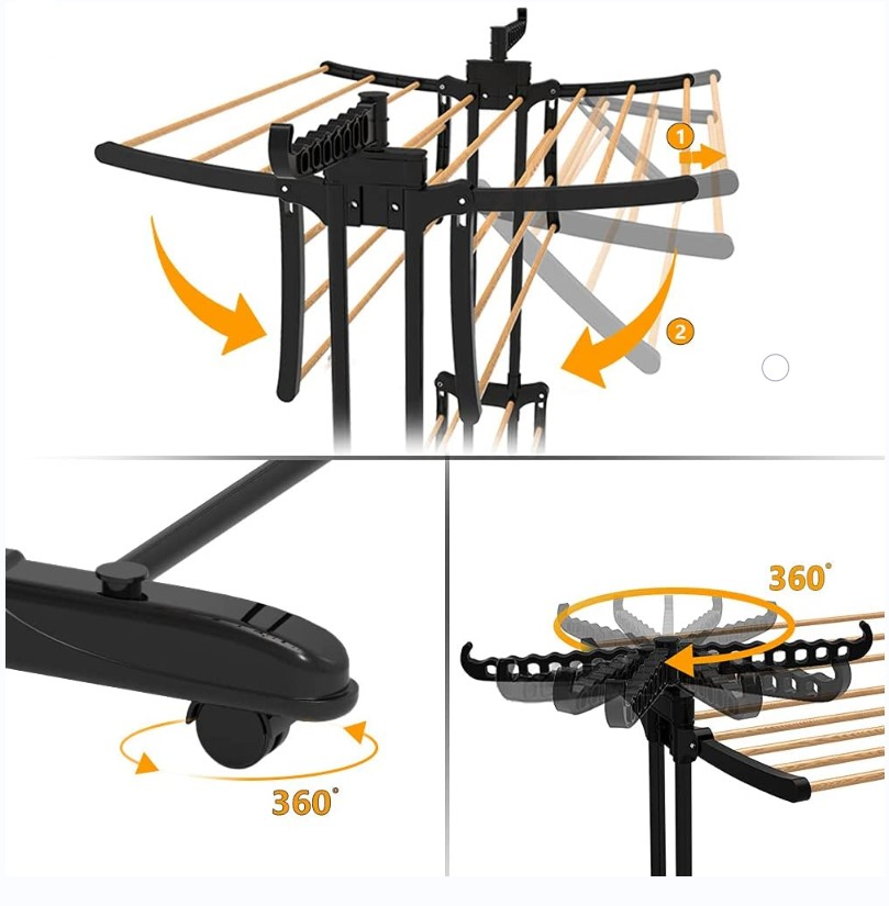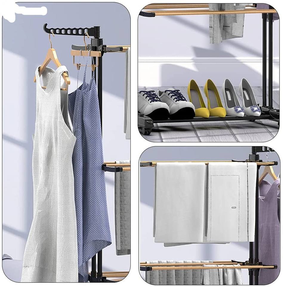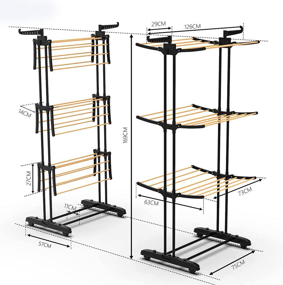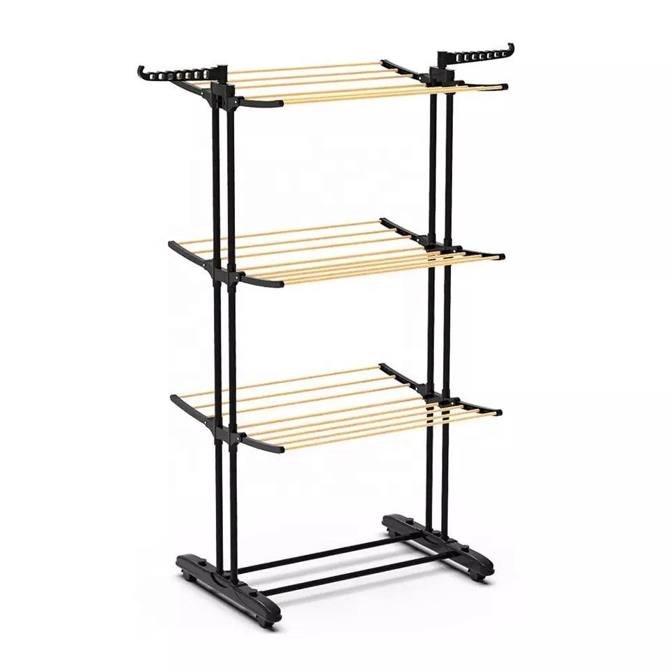 Vente chaude Porte-vêtements en métal mobile à 3 niveaux Sèche-linge debout pliable multifonctionnel pour le linge intérieur extérieur