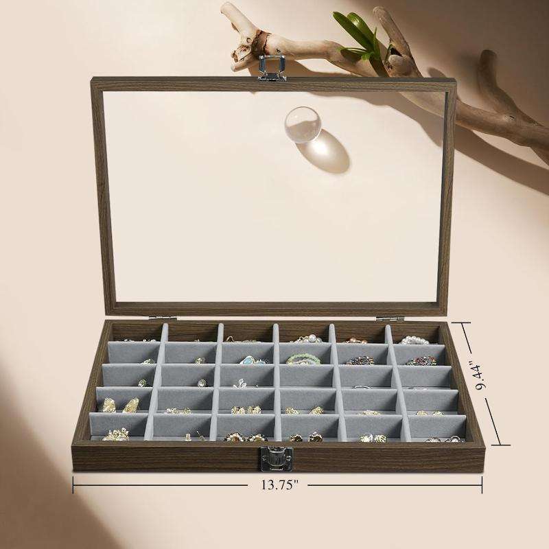 Vente chaude 30 Grid Portable anti-poussière en bois plateau à bijoux boîte à bijoux disponible au prix de gros auprès de l'exportateur indien