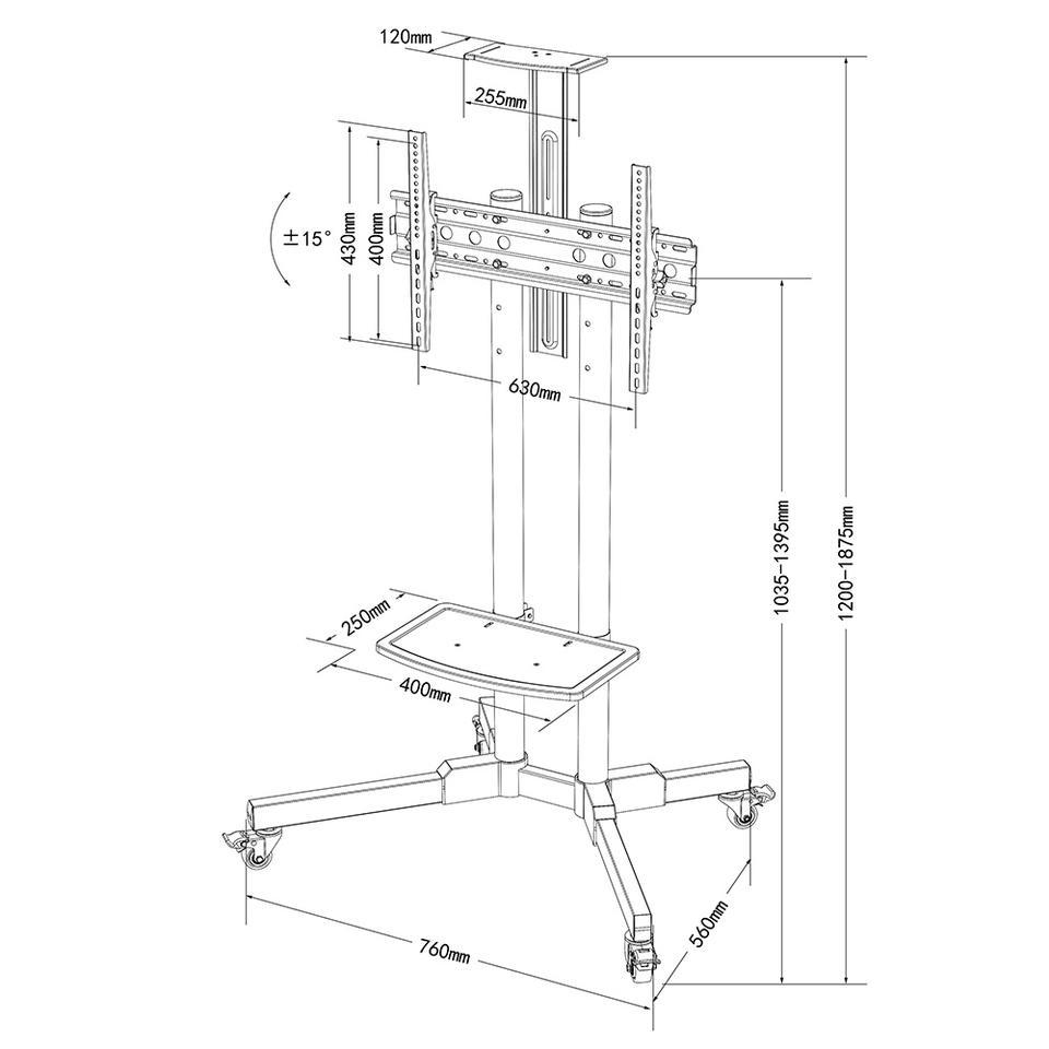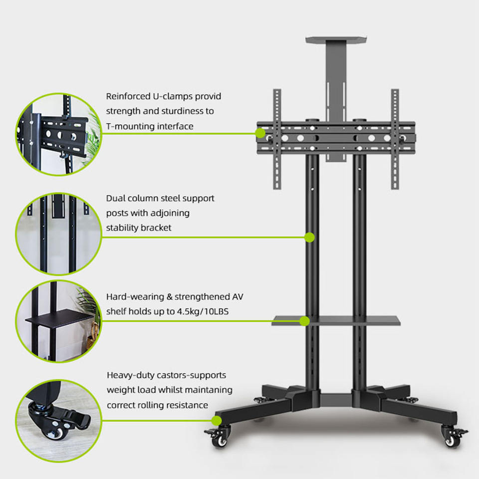 Vente chaude 32-65 pouces TV monte des chariots chariot de télévision mobile pour LCD LED écran plat chariot de télévision à écran incurvé