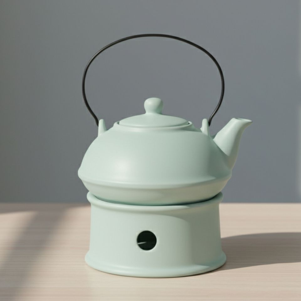 Hot Selling 3459346 Multi Purpose Ceramic Stoneware: Tea Pot W/Warmer + Iron Handle
