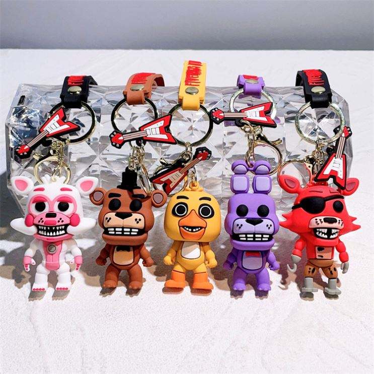 Porte-clés 3D en caoutchouc d'horreur, motif Anime Midnight Bear Freddy, pendentif pour sac à dos, porte-clés de voiture d'horreur, vente en gros