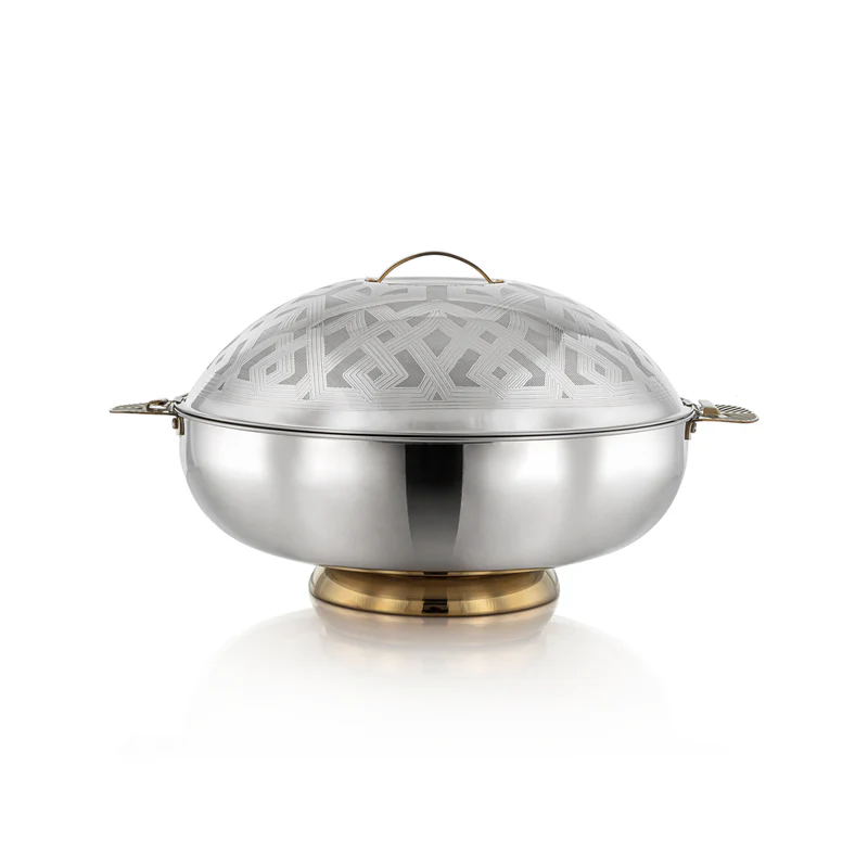 Serveur de nourriture en acier inoxydable et bois de capacité de 3L avec poignée en laiton à motif floral HotCase et casserole HotPot