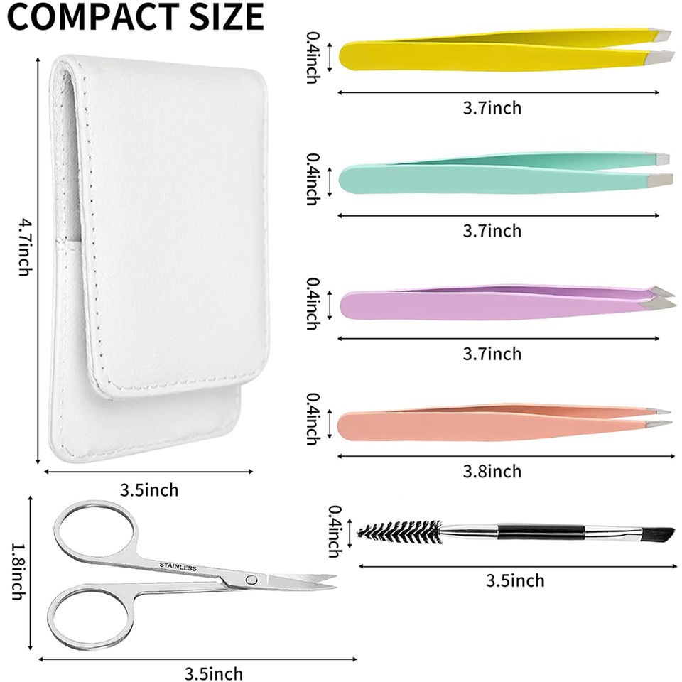 Vente chaude : 4 pinces à épiler inclinées de 3,7 pouces avec pointe arrondie, ciseaux à épiler avec rangement portable