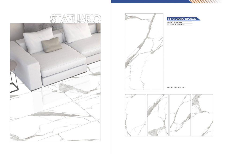 Hot Selling 600x1200mm Glossy Luxury Villa Living Room Ceramic Tiles Modern Porcelain Floor Tiles 8MM Thick <0.5% Water