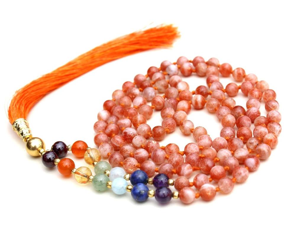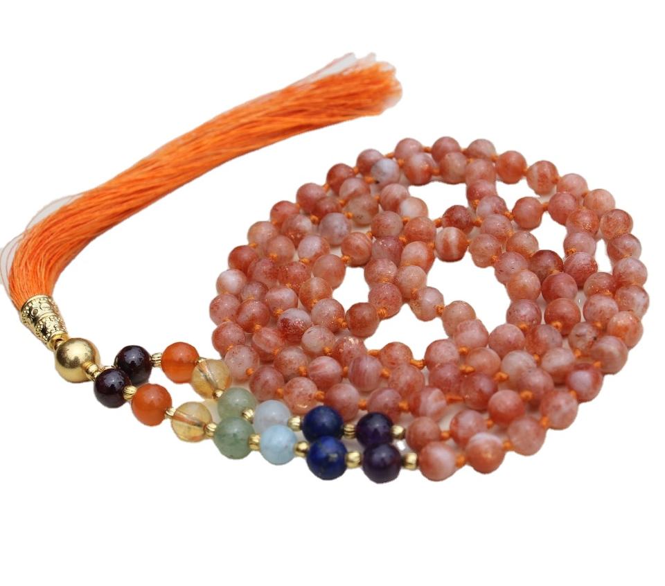 Vente chaude 7 Chakra Sunstone 108 Perles Mala Nouées À La Main Artiste Indien Pulsera Colliers pour Fiançailles Yoga Bijoux