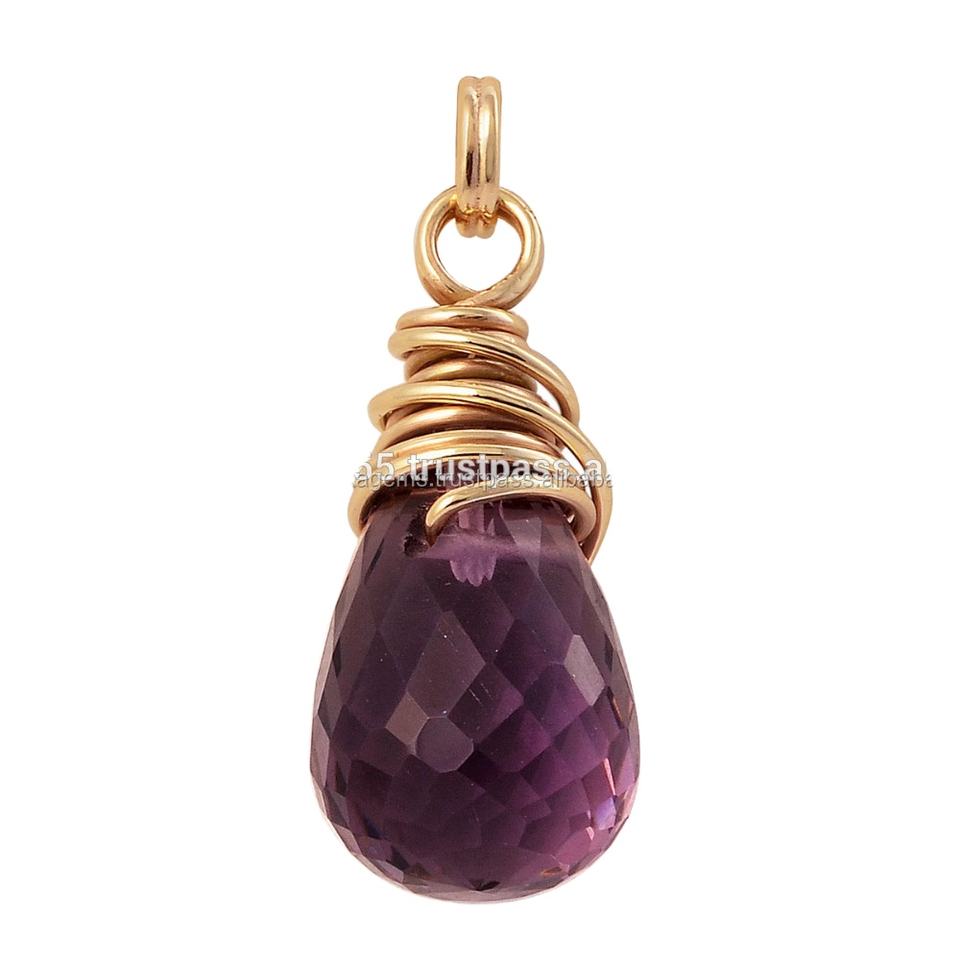 Vente chaude 925 collier pendentif en argent Sterling plaqué or améthyste pierre précieuse semi-précieuse pendentifs fins breloques en gros