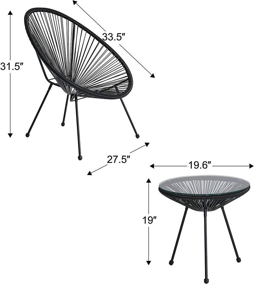 Paquet:1 x table basse en verre + 2 x chaise Acapulco