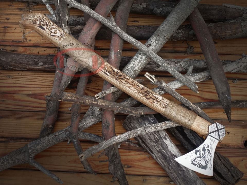 Vente chaude tête gravée à l'acide forgée à la main hache viking hache barbu hache nordique arme médiévale arme viking hache médiévale