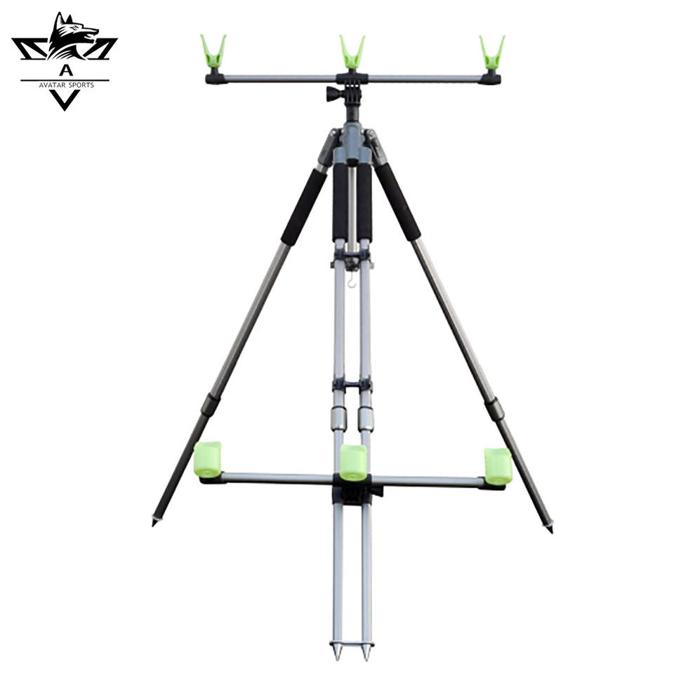 Vente chaude Réglable Télescopique 3-Rod En Alliage D'aluminium Stable Trépied Stand Surf Canne À Pêche Pod Avec Conception De Côtes Renforcées