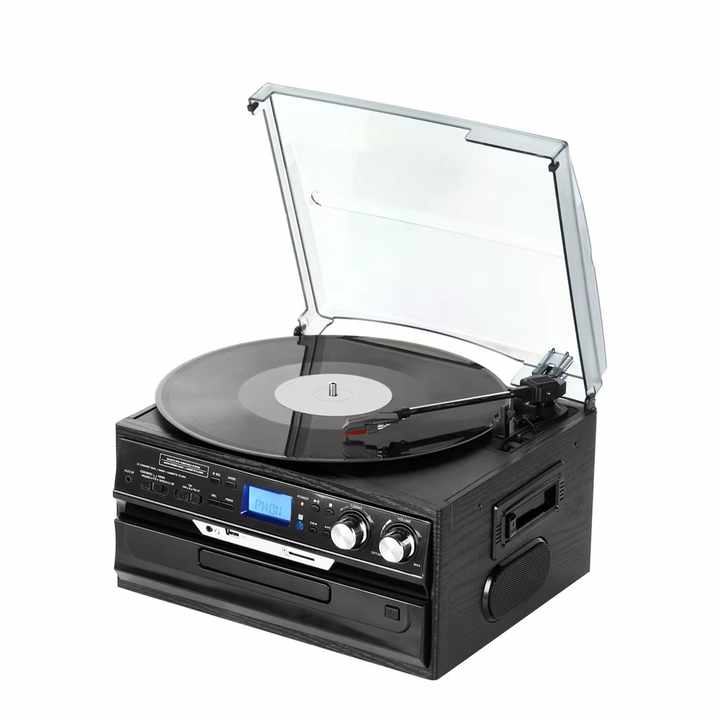 Système de lecteur de disques vinyles tout-en-un à succès avec convertisseur vinyle en MP3, lecteur CD/cassette/radio FM, fournisseur OEM/ODM