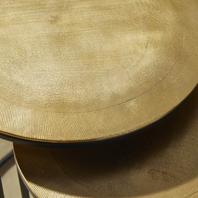 Offre spéciale Ensemble de 2 tables d'appoint en aluminium et en fer Table gigogne faite à la main à dessus rond pour meubles de salon et de chambre à coucher