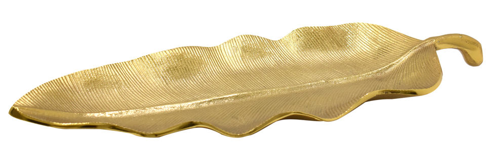 Plat et plateau de service en aluminium moulé, forme feuille, finition nickel brillant, best-seller pour la maison