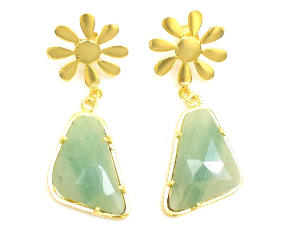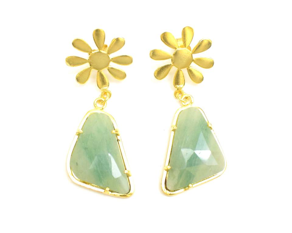 Vente chaude Amazonite Plaqué Or Pierres Précieuses Boucles D'oreilles Ensemble À La Mode Bijoux Faits À La Main Pour Les Femmes Plaqué Or Boucle D'oreille