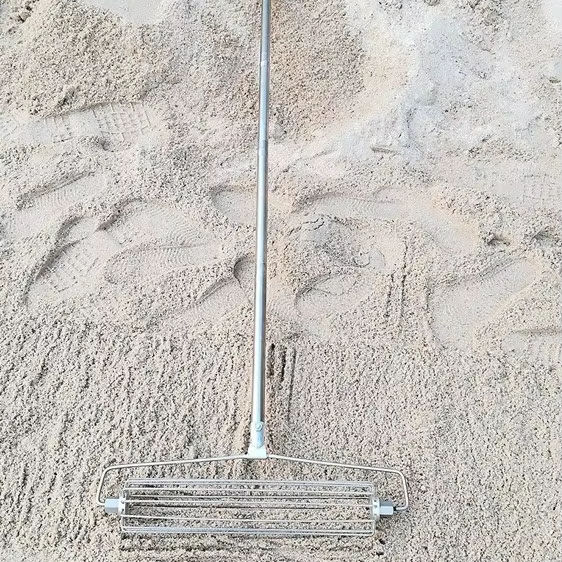 Vente chaude Anti-rouille En Acier Inoxydable Râteau Sable Levier Roulant Bunker Râteau Golf Râteaux De Sable pour Terrain De Golf