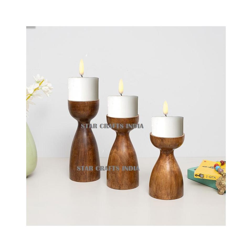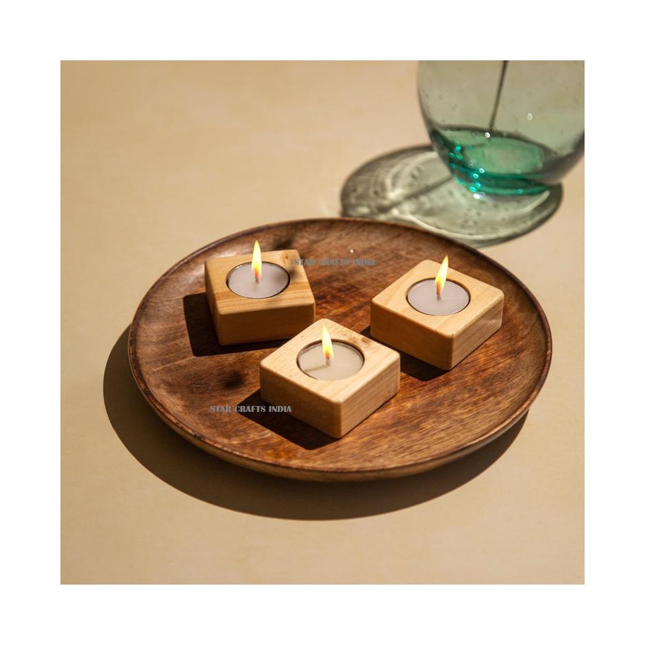 Porte-bougie multifonctionnel en bois de manguier fait main, design moderne attrayant, écologique, personnalisable, décoration d'intérieur, vente chaude