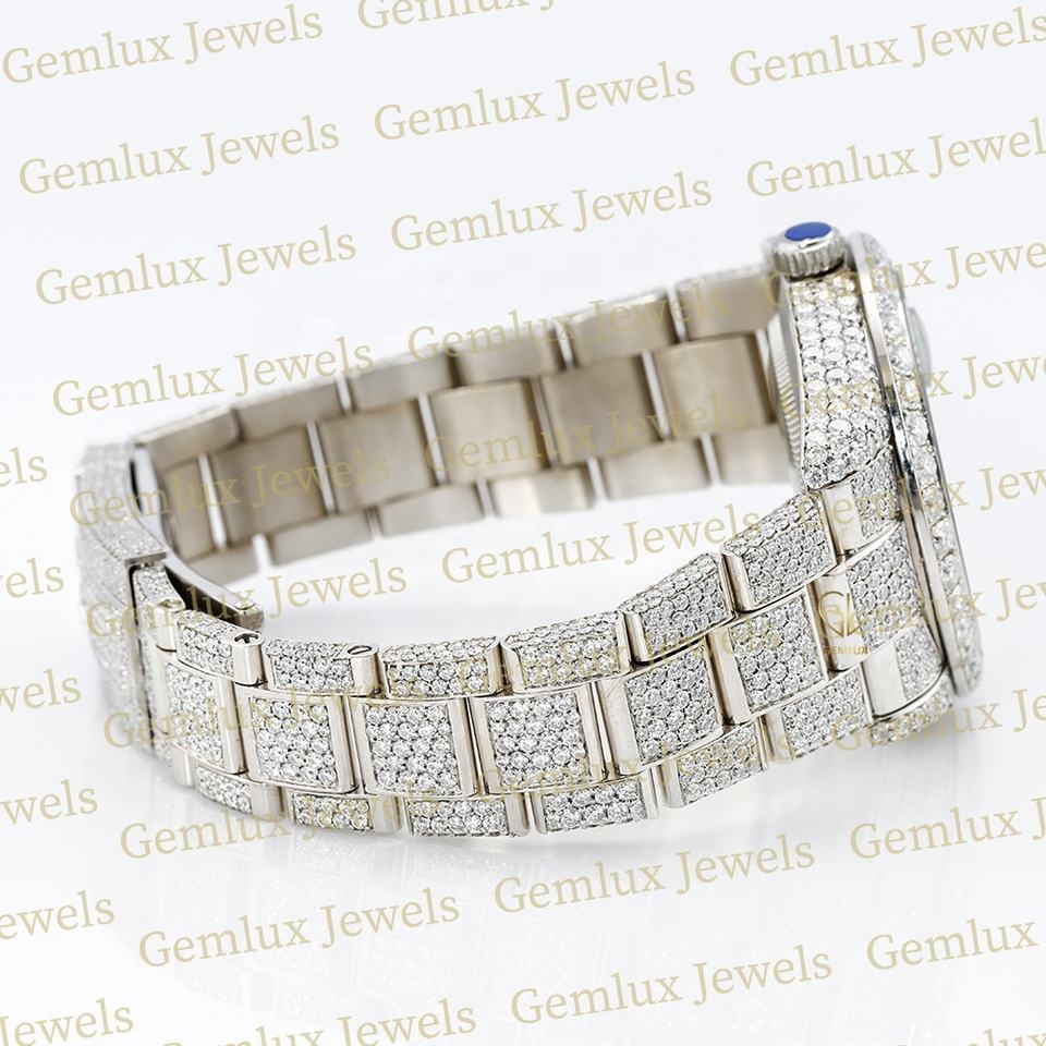 Vente chaude Date automatique Entièrement glacé Pass Diamant Testeur D VVS Moissanite Acier Inoxydable Diamant Montre Pour Hommes