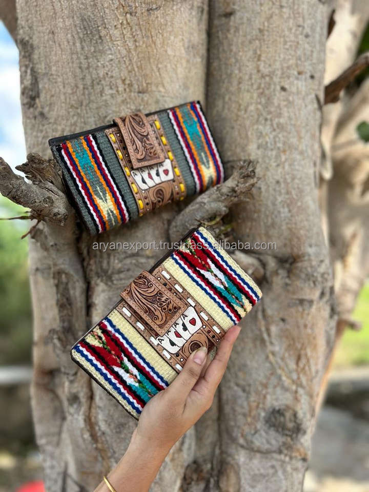 Product name:Designer Tooled Aztec Leather Clutch