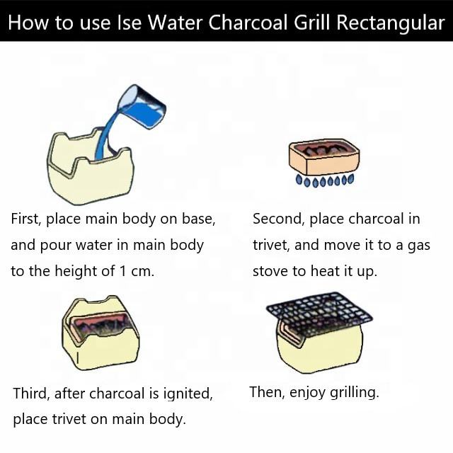 Vente chaude Banko Ware Céramique Hibachi Grill pour la maison, Utilisation professionnelle Ise Water Charcoal Grill Rectangulaire